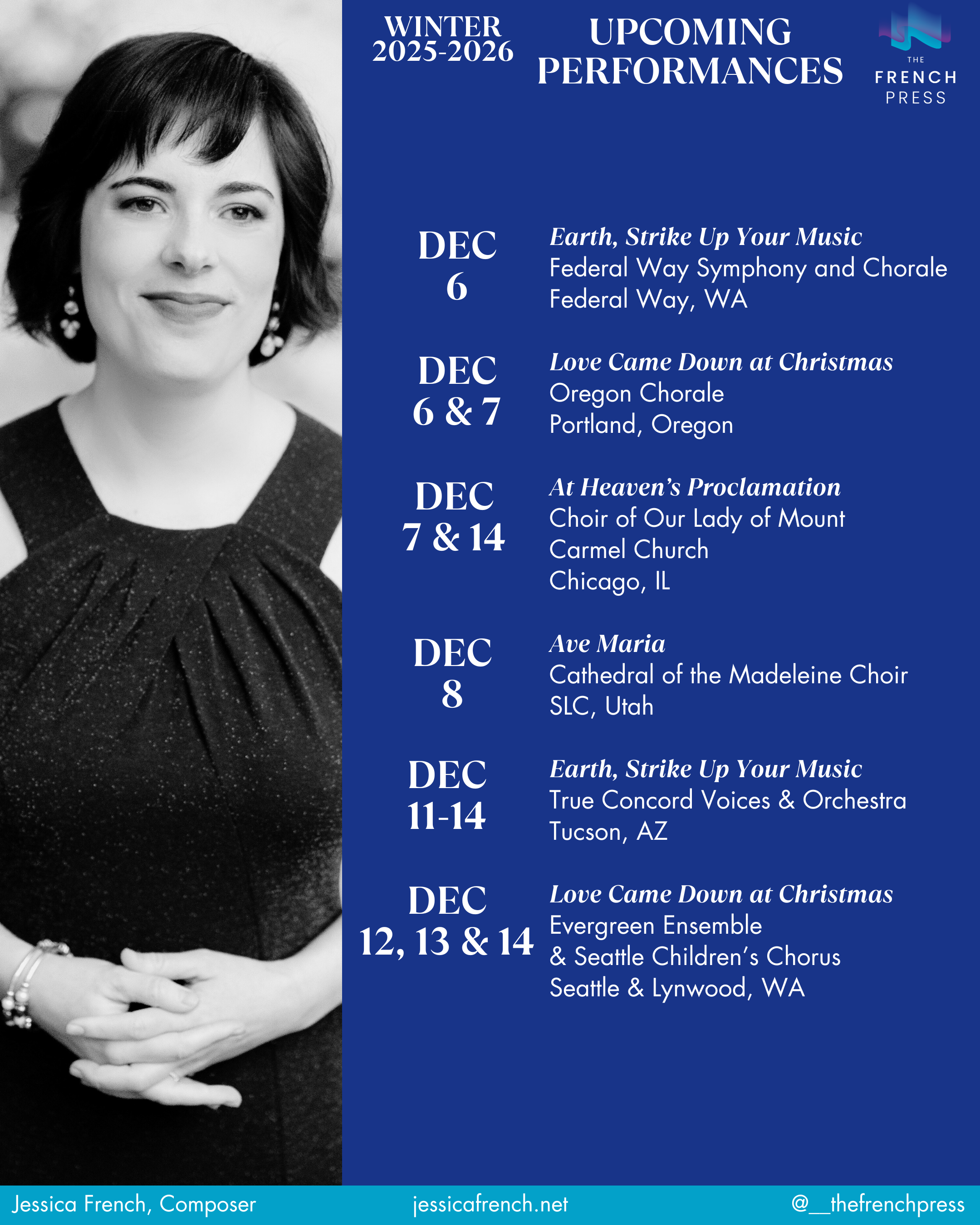 Jessica French is an acclaimed choral composer whose music has graced national conventions and choir festivals including AGO, AAM, the St. Thomas Girl Chorister Course in NYC, and RSCM. Internationally, her compositions have echoed in renowned cathedrals including the U.K., Germany, and France. Jessica's unique synesthetic approach imbues her work with vibrant color and emotions, as she continues to inspire and shape the contemporary choral music landscape.